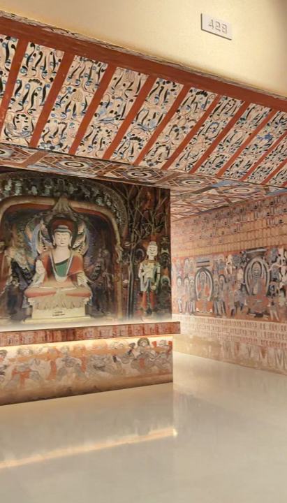 展览现场依次展陈了莫高窟早期、中期、晚期的代表性壁画、洞窟、彩塑等,能让观众“逛一次展,洞察莫高窟的千年”。